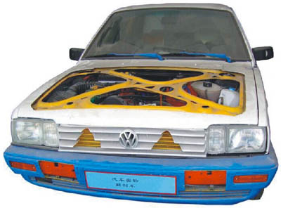 多功能解剖車(chē)選用桑塔納2000為基礎(chǔ),可容易地看見(jiàn)發(fā)動(dòng)機(jī)艙、車(chē)身側(cè)圍的構(gòu)造結(jié)構(gòu)、鋼板的厚度及獨(dú)立懸掛的結(jié)構(gòu),甚至車(chē)輪的輪轂及輪胎的橫截面。此外,車(chē)內(nèi)方向盤(pán)、排擋桿、手剎、安全帶固定裝置及安全帶卷等平時(shí)都被包裹嚴(yán)實(shí)的部件也被特別地一剖為二,內(nèi)部工藝精度、構(gòu)造清晰呈現(xiàn),能夠展示汽車(chē)各總成裝置以及各附件位置。