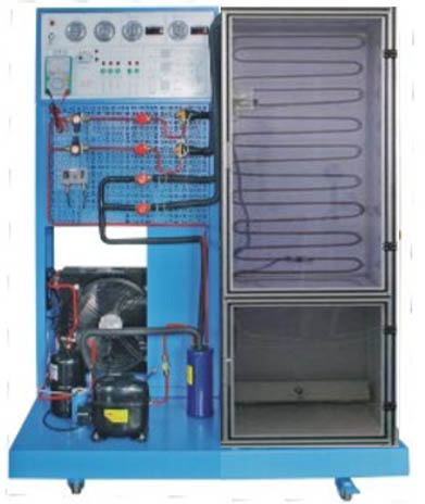 2.采用1匹制冷機組,采用空氣冷冷凝器和透明的塑料蒸發器,可以觀察制冷劑由液態變為氣態的現象; 系統結構緊湊、布局合理,造型美觀大方,、可研究制冷劑在循環管道內的各種流動,包括在壓縮機中的回流。